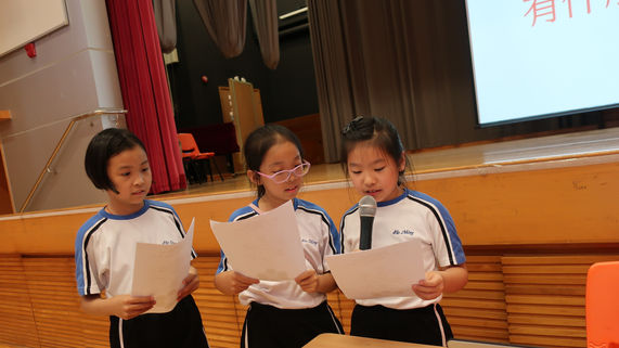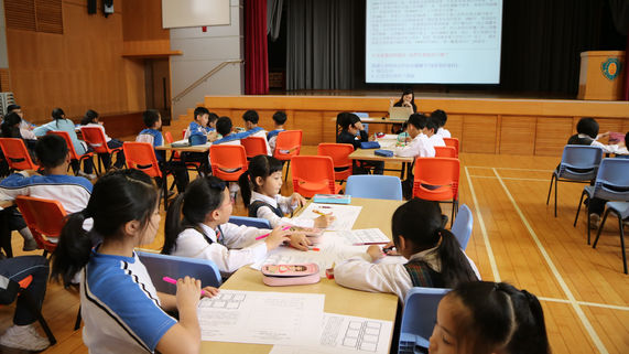 為了進一步推動圖書館與不同學科的合作,圖書館主任自上年度帶領4年級參與教育局的種籽計畫,於本年度繼續延伸該校本課程,提高學生的資訊素養。圖書館主任董雅詩老師策劃了6節專題課堂,以教授學生Big6的學習技巧,並製作了專題網頁,將資源上載網頁,供師生參考及學習。 (每一次聯課堂的內容均上載專題網頁,供學生在家參考。) 透過活動教學,讓學生深入了解如何使用多元的資源及處理資訊的技巧,以利完成常識科的平面專題及視藝科的立體作品。圖為全級5班學生在禮堂上聯課堂,董老師向學生施教的的情形,學生都相當投入。
