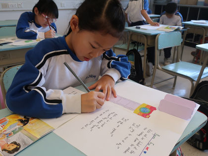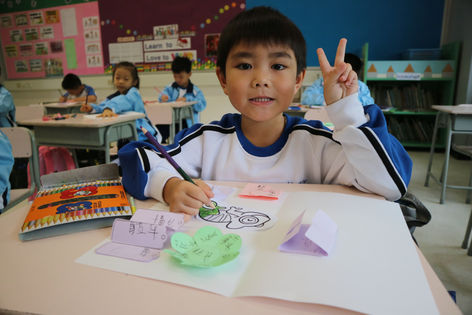班主任於課堂內教授各年級的學生以介紹圖書為主題,製作lapbook。